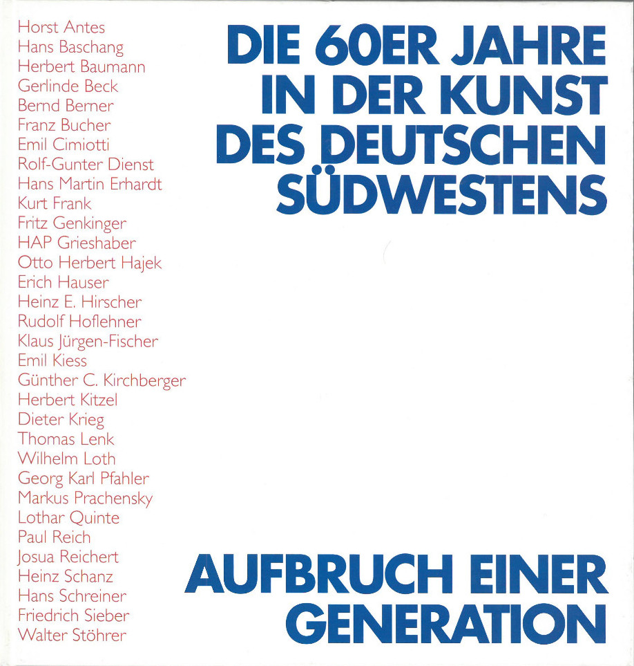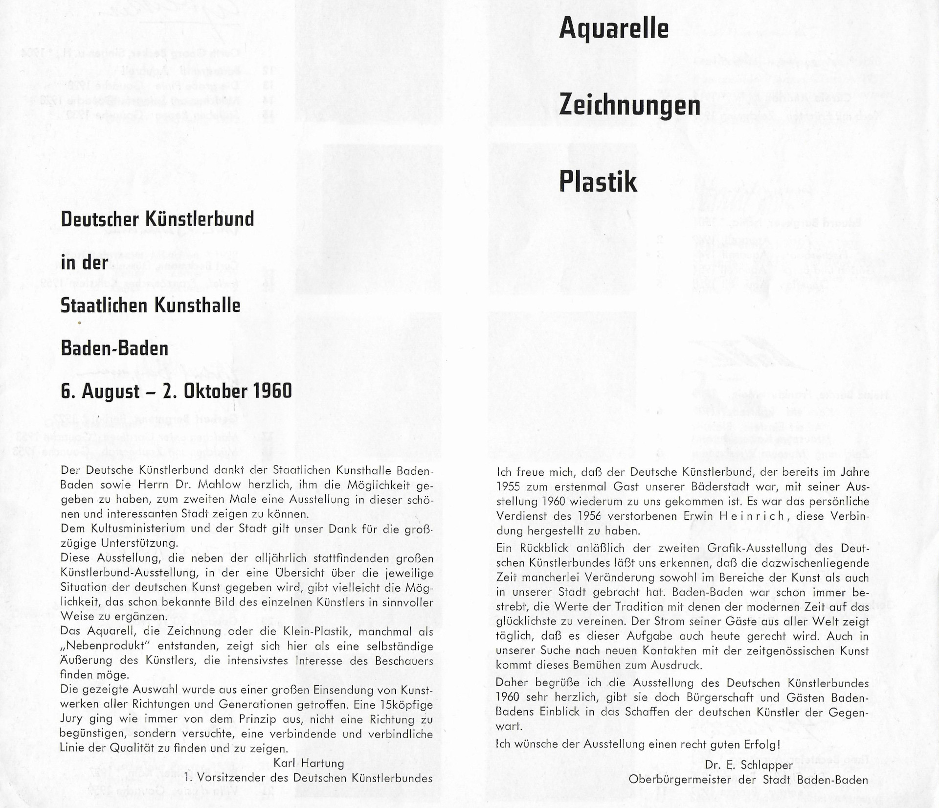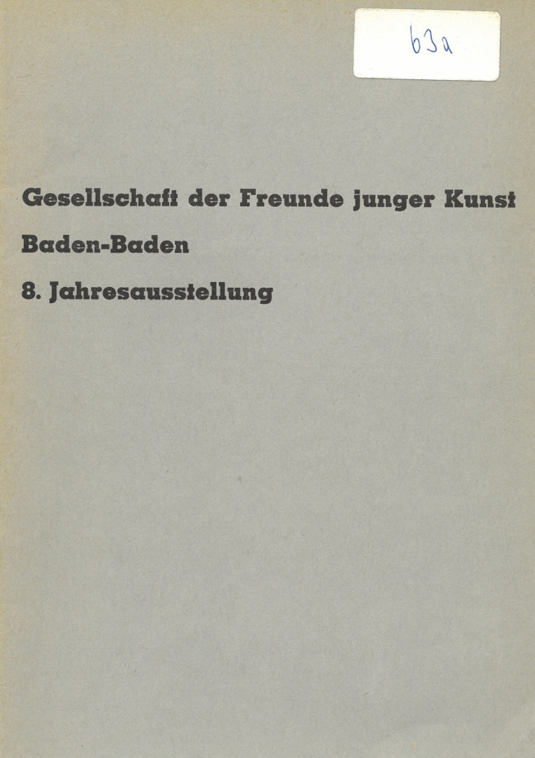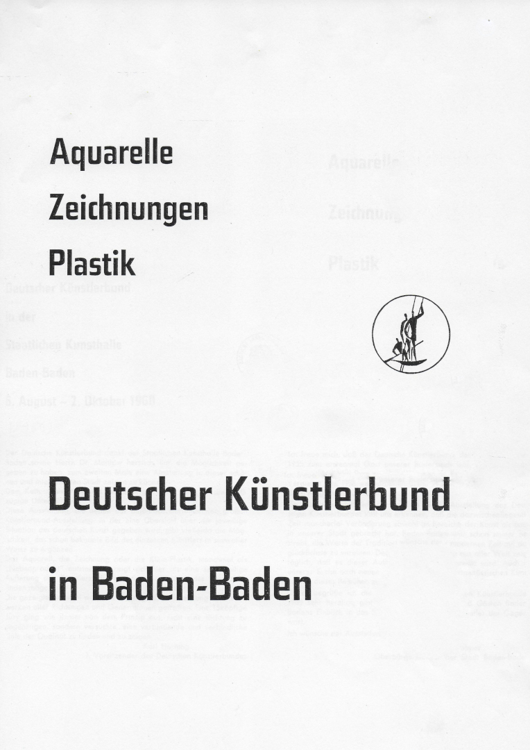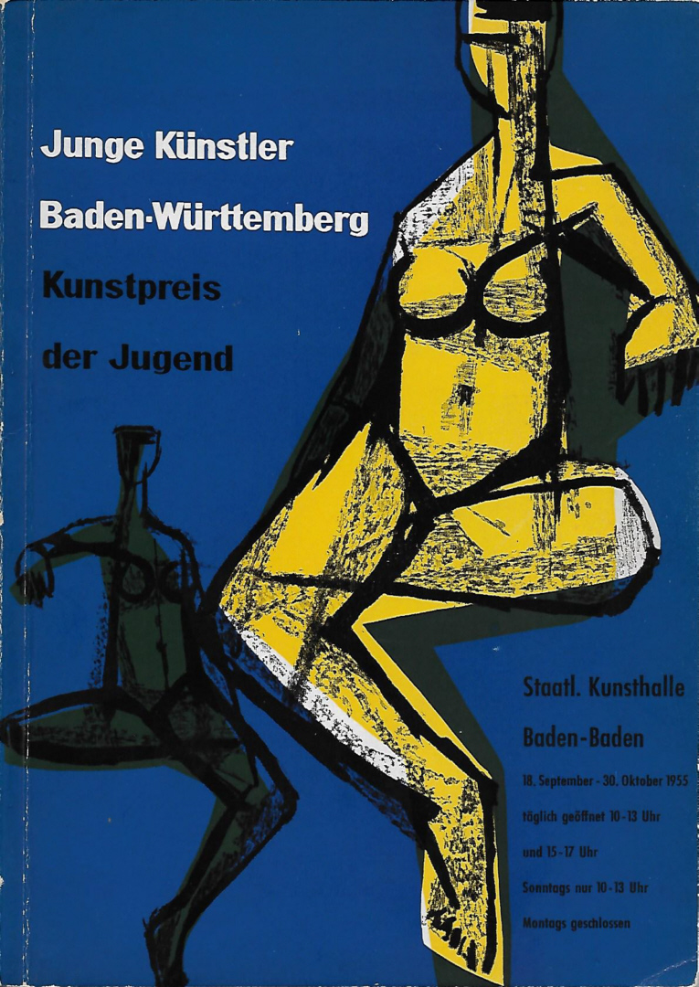 1955 * Württembergischer Kunstverein Stuttgart, Kunstgebäude am Schloßplatz, “Kunstausstellung Baden-Württemberg 1955”, Stuttgart, 03.07.-28.08.1955. - COVER -, * Staatl. Kunsthalle Baden-Baden, “Junge Künstler” Baden-Württemberg, “Kunstpreis der Jugend”, Baden-Baden, 18.09.-30.10.1955. - COVER -