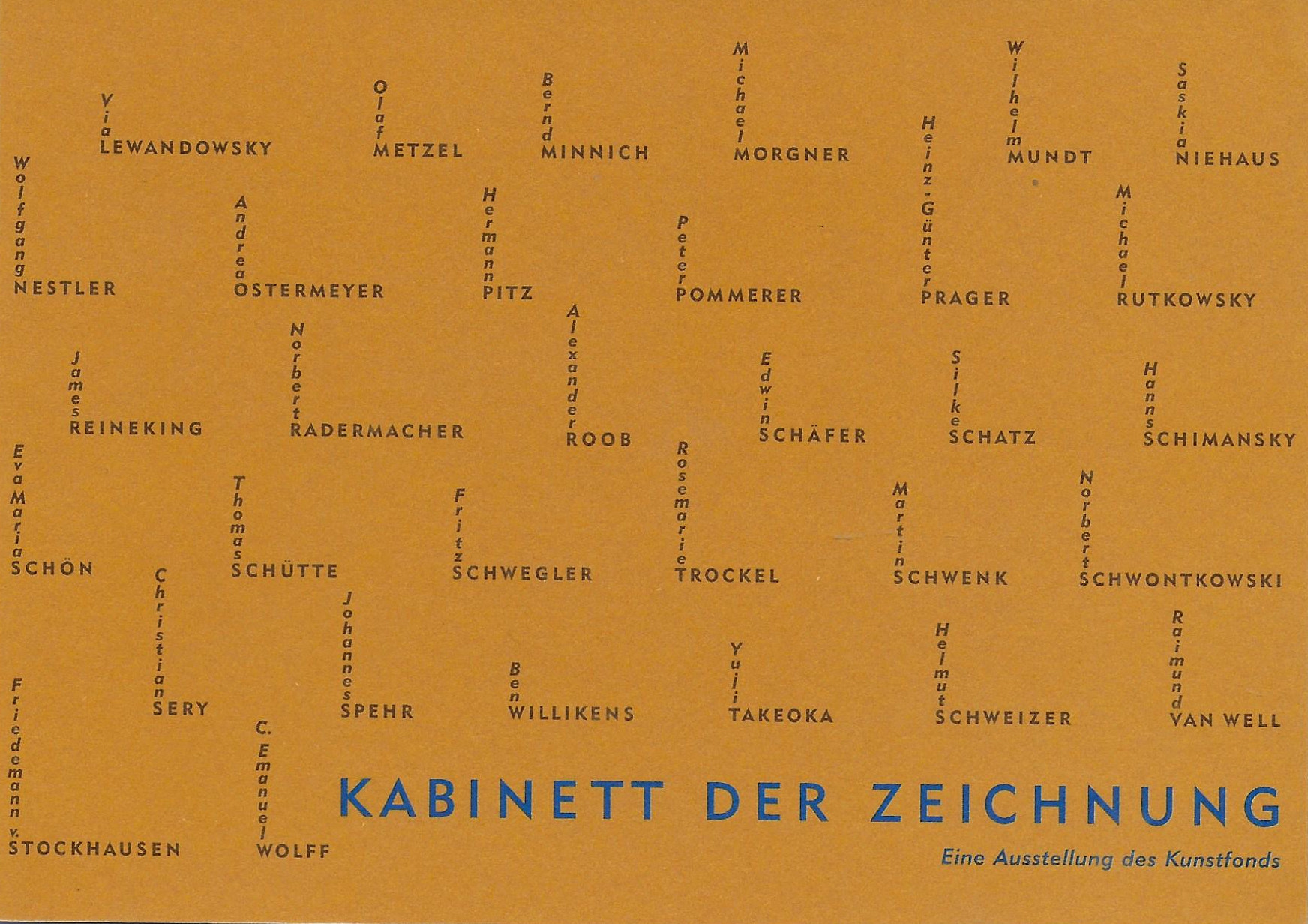1988 * Galerie Fischinger, Stuttgart (mit Hans Brög). * Städtische Galerie im Schloßpark Strünkede, “Zeichner 1”, Herne, 27.05.1988 - 26.06.1988. - COVER -