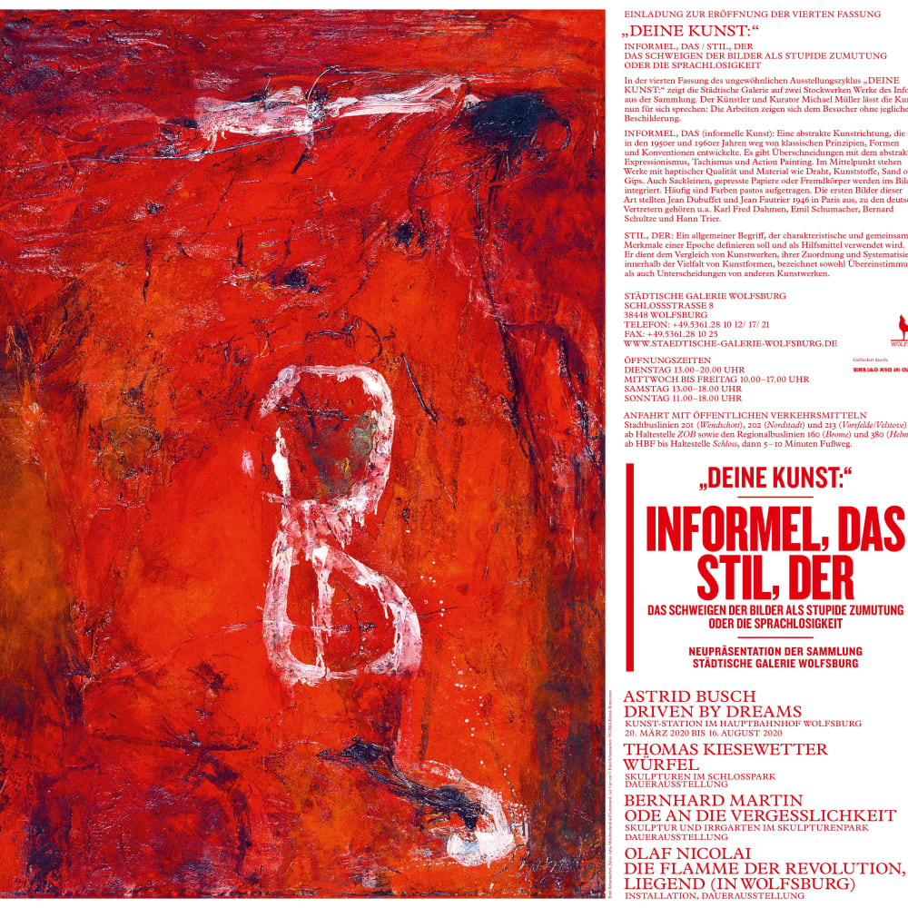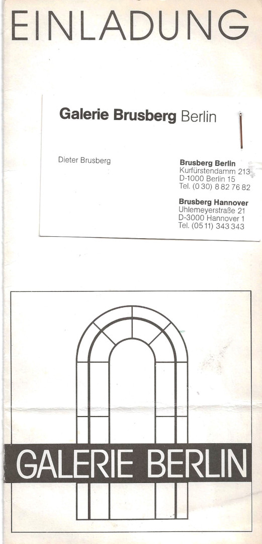 1989 * Stadtgalerie und Stadtmuseum Kiel, Deutscher Künstlerbund, “37. Jahresausstellung, Durchsicht”, Kiel, 10.06.-06.08.1989. - PLAKAT - - COVER - * Galerie Brusberg Berlin, “Ausstellung 269 (43), Westkunst - Ostkunst”, Berlin, 15.07.-26.08.1989. * Kunstverein Wolfenbüttel, “Hommage für Arno Schmidt, Wind kam auf: Wind”, Wolfenbüttel, 22.10.-02.12.1989. - COVER -