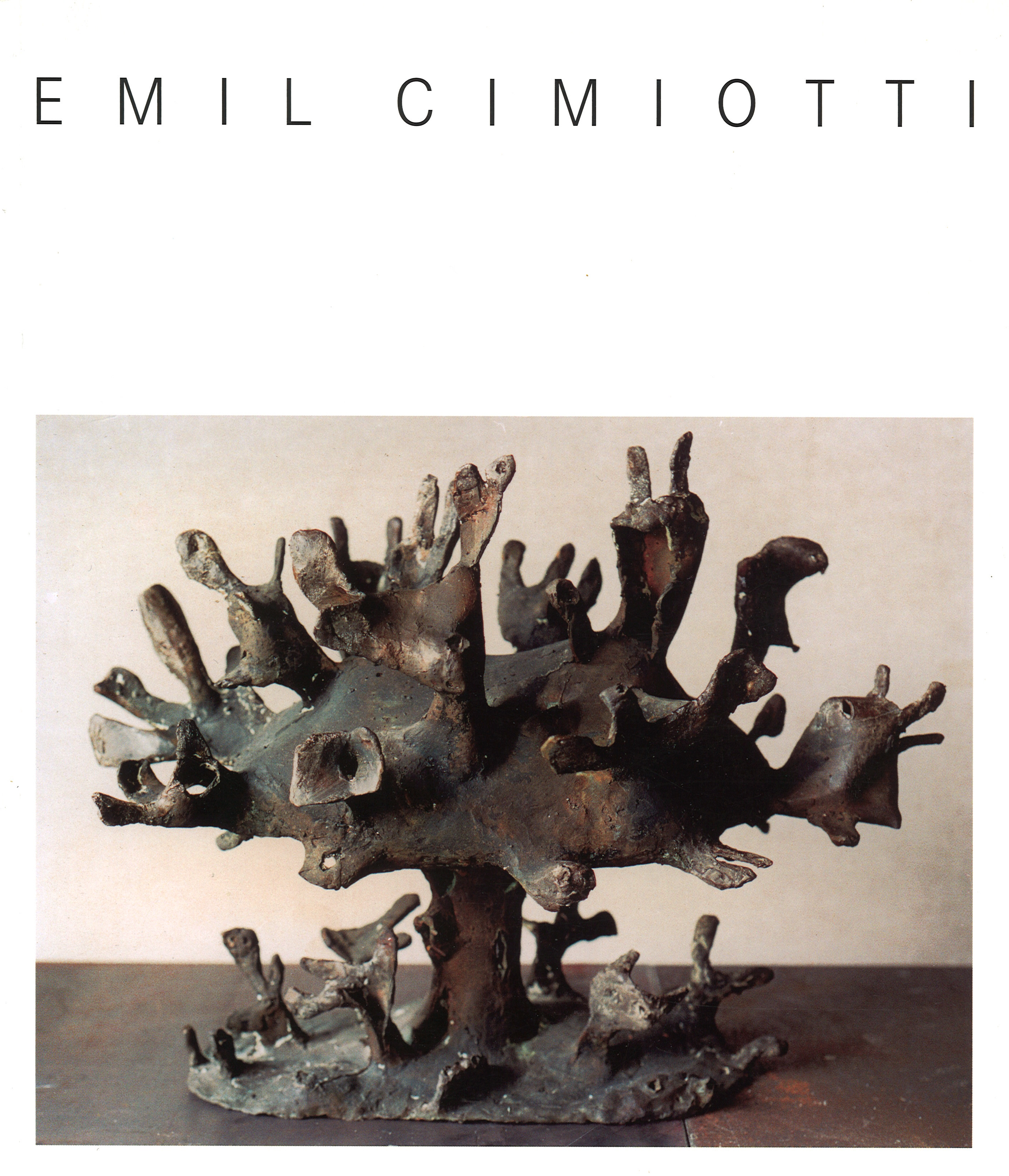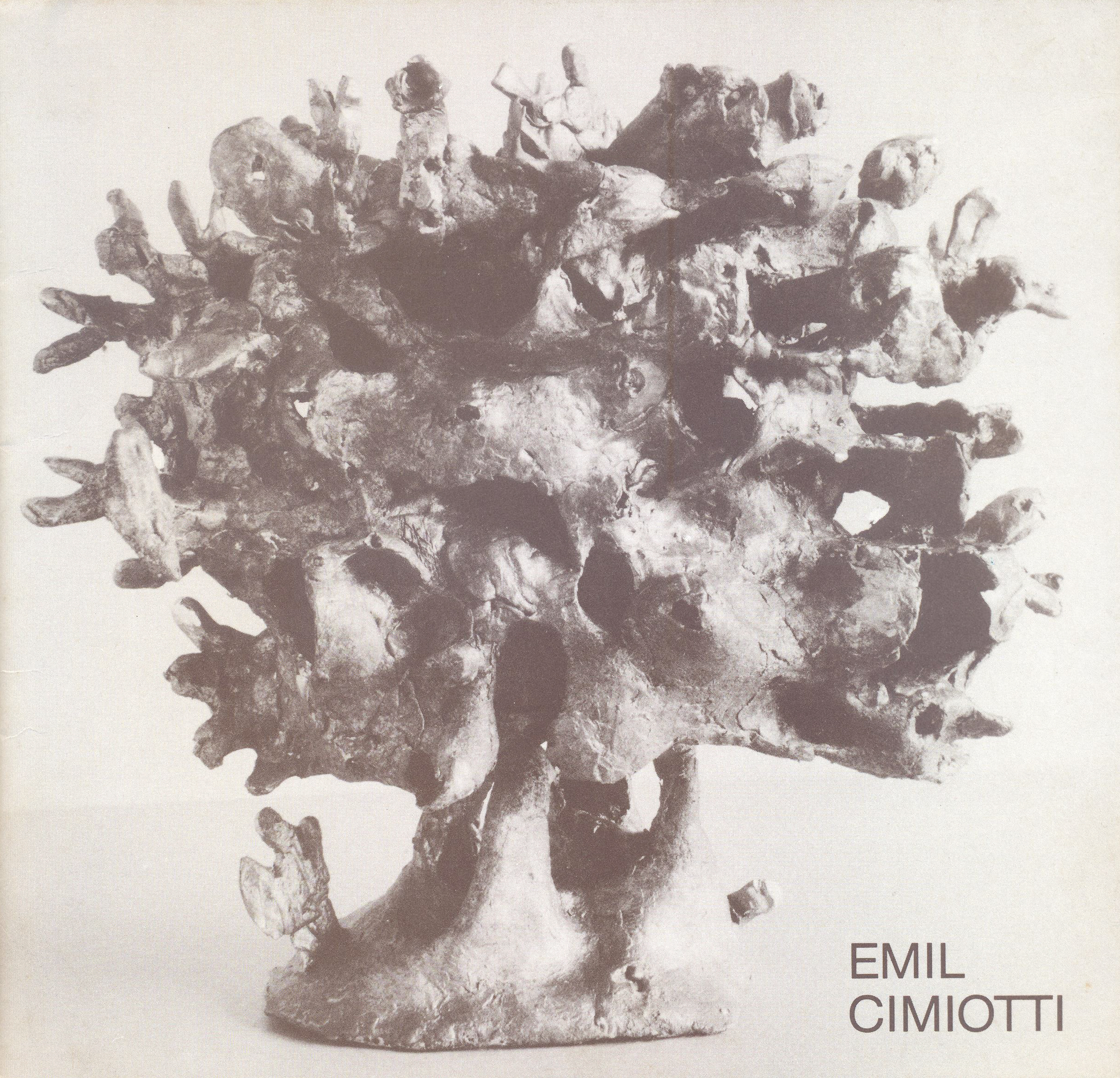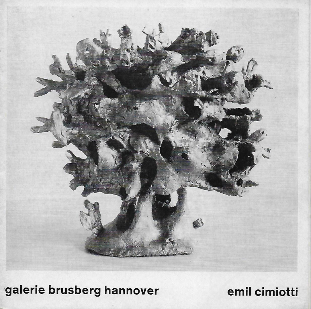 Emil Cimiotti Hrsg.: Galerie Brusberg, Hannover, Dezember 1961 Einführungstext: Fritz Seitz 15 Seiten. Ein Porträtfoto, eine “Zeichnung 1961”, 7 Bronzen: “Der Wald” 1959, “Der Baum” 1961, “Vulkano II” 1959, “Schwebende Landschaft” 1962 und “Baum III” von 1961.