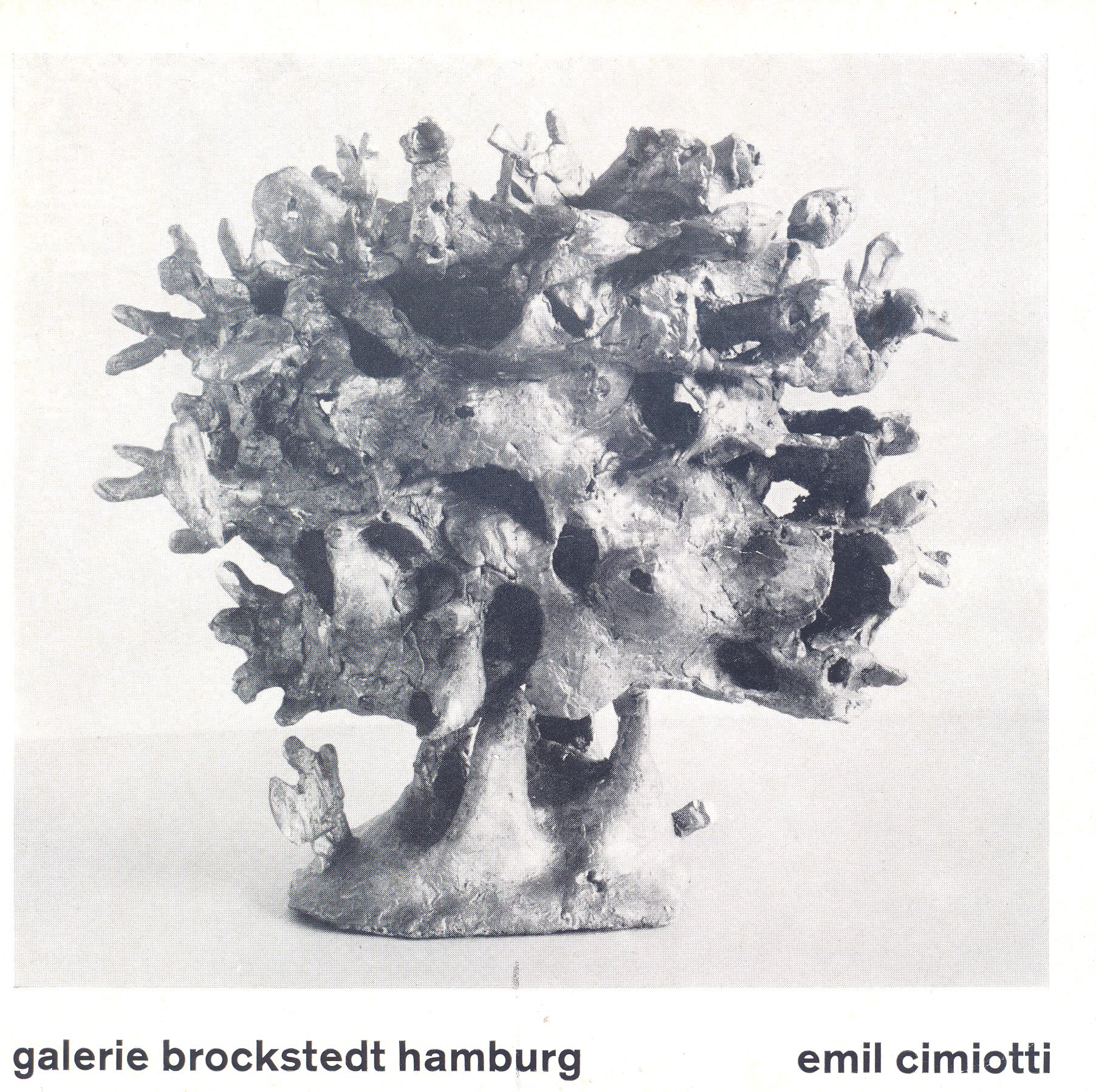 Emil Cimiotti Hrsg.: Galerie Brockstedt, Hamburg, 1962 Einführungstext: Fritz Seitz 15 Seiten. Ein Porträtfoto, eine “Zeichnung 1961”, 7 Bronzen: “Der Wald” 1959, “Der Baum” 1961, “Vulkano II” 1959, “Schwebende Landschaft” 1962 und “Baum III” von 1961.
