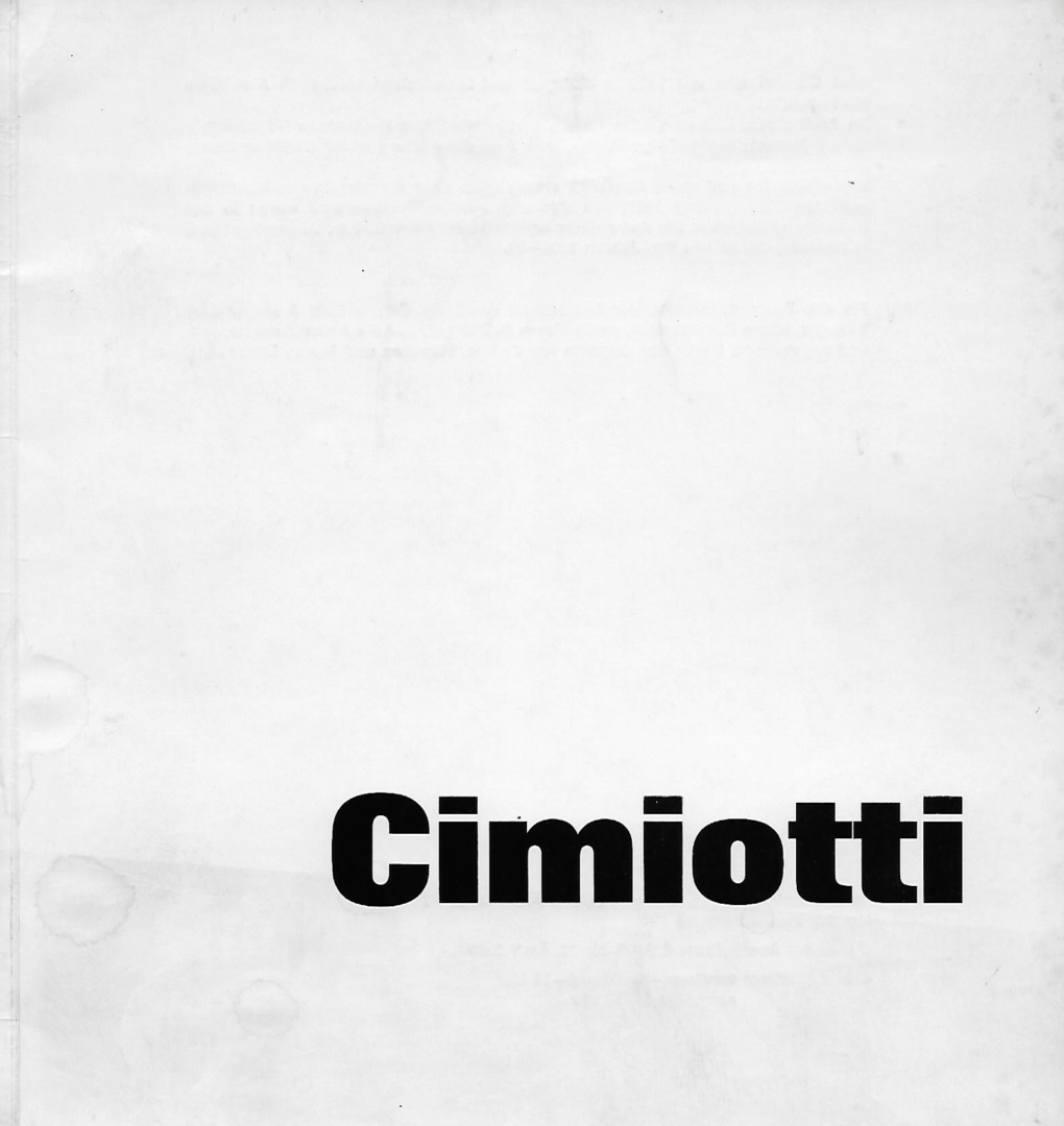 Cimiotti “Plastik und Zeichnungen 1957-1977” Hrsg.: Städtische Kunsthalle Mannheim 1977 Ausstellung: 29. Juni 1977 - 07. August 1977 Mannheimer Morgen Großdruckerei und Verlag GmbH Einführungstext: Heinz Fuchs 104 Seiten mit Abbildungen von 37 Plastiken, 5 Zeichnungen und einem Porträt.