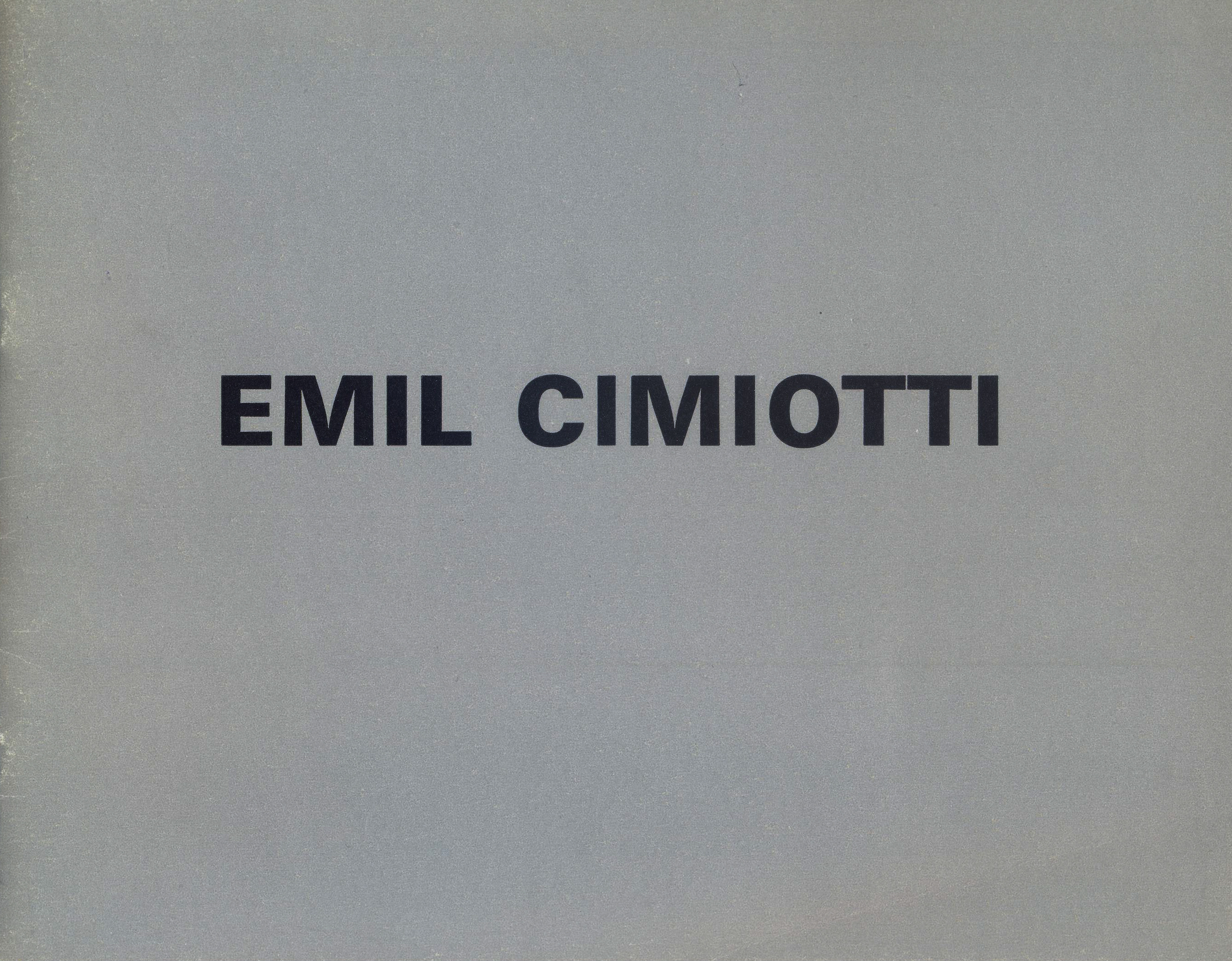 Emil Cimiotti “Plastiken und Arbeiten auf Papier”, Katalog 127 Hrsg.: Galerie Schlichtenmaier oHG, Schloß Dätzingen, 71117 Grafenau Ausstellung: 10. April 1994 - 04. Juni 1994 Einführungstext: Fritz Seitz 79 Seiten mit abgebildeten 25 Bronzen, 23 Zeichnungen und einem Porträt. Cover-Abbildung “Terra incognita” von 1991. Dergl. auch Motiv der zweiseitigen Einladung. ISBN 3-89298-091-8