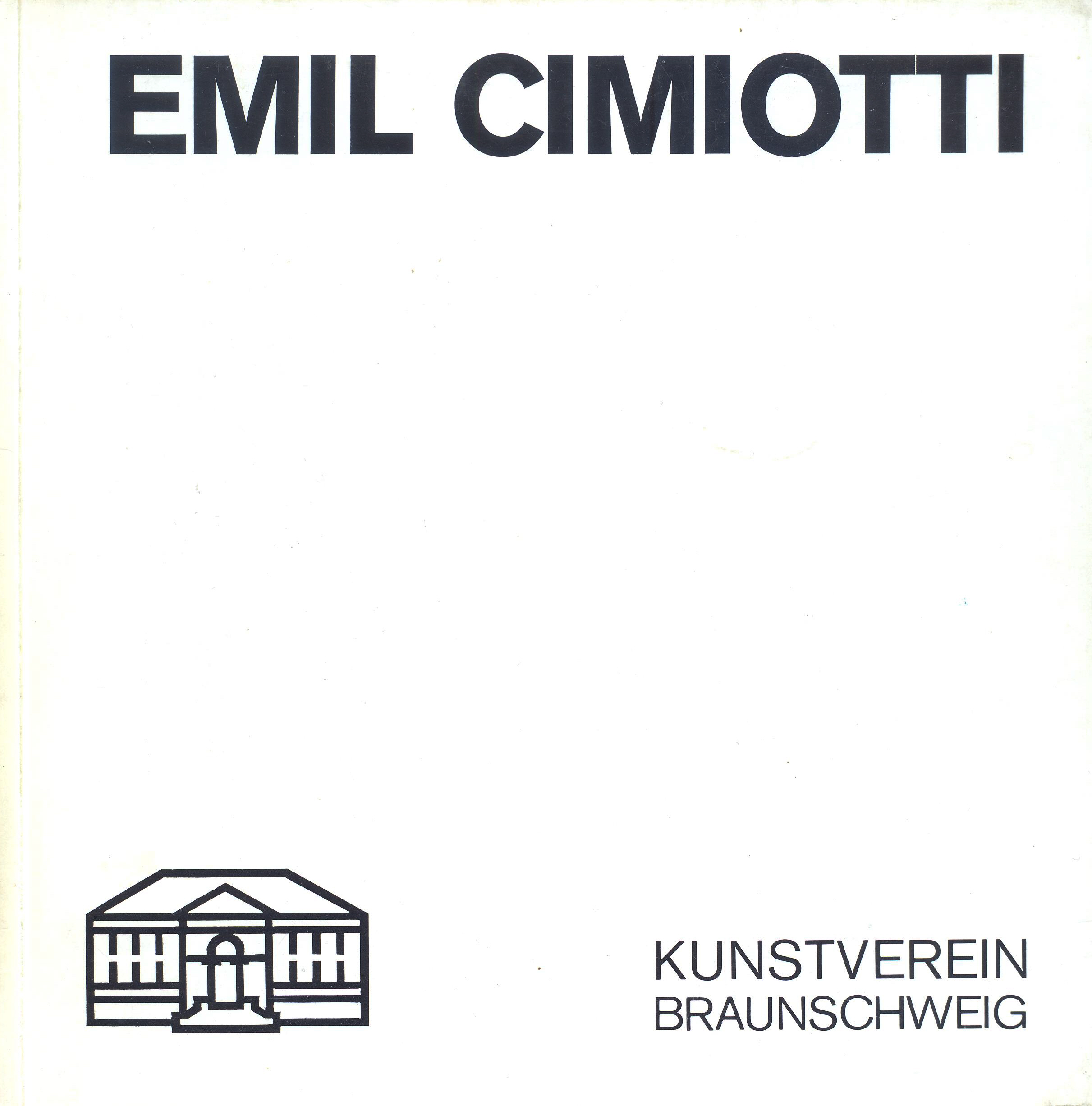 Emil Cimiotti Hrsg.: Kunstverein Braunschweig, Braunschweig, 1962 Eröffnung 11. Februar bis 11. März 1962 im Haus “Salve Hospes” Einführungstext: Fritz Seitz 15 Seiten + 2 Seiten Einleger “Liste der ausgestellten Arbeiten”. Ein Porträtfoto, eine “Zeichnung 1961”, 7 Bronzen: “Der Wald” 1959, “Der Baum” 1961, “Vulkano II” 1959, “Schwebende Landschaft” 1962 und “Baum III” von 1961.