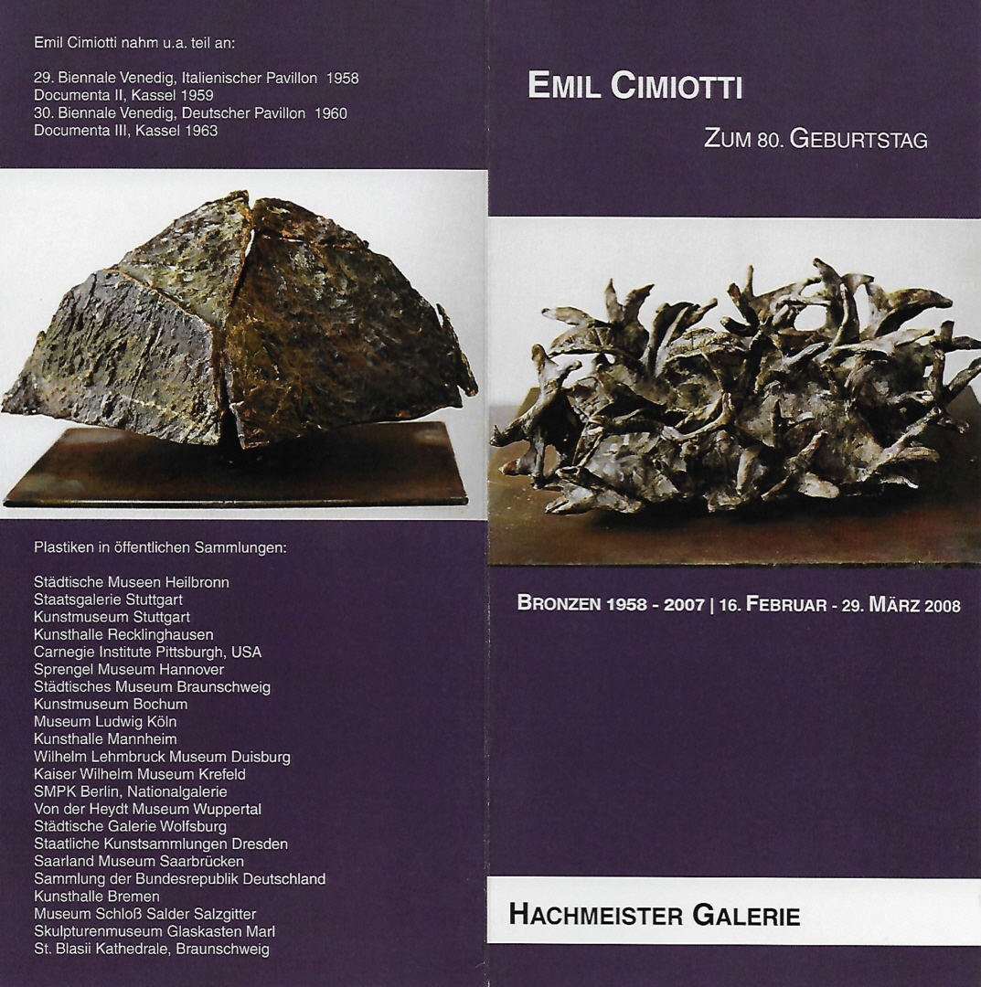 Emil Cimiotti “Zum 80. Geburtstag” Flyer zur Ausstellung, 4 Seiten - 2 farbige Abbildungen Hachmeister Galerie Münster Ausstellung: 16. Februar 2008 - 29. März 2008