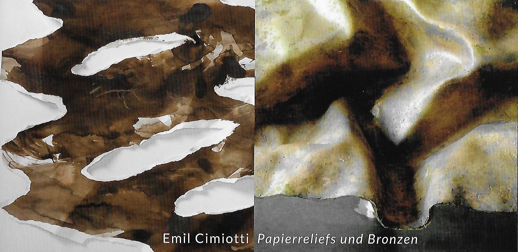 “Emil Cimiotti - Papierreliefs und Bronzen” Einladungsflyer zur Ausstellung, 2 Seiten - 2 farbige Ausschnitts-Abbildungen galerie am klostersee Ausstellung: 23. Oktober 2016 - 29. Februar 2017 Einführung: Prof. Dr. Christa Lichtenstern, Berlin