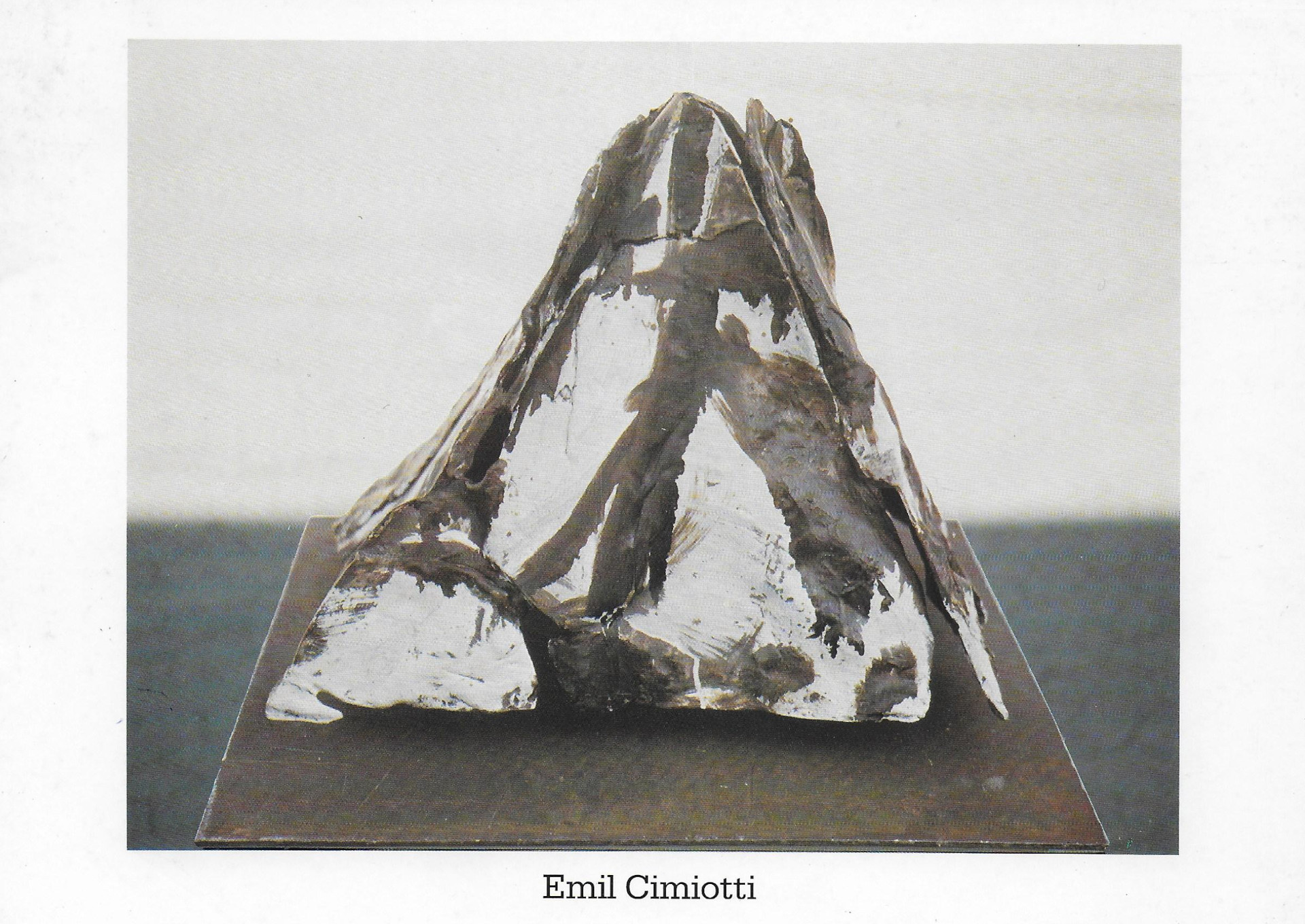 Emil Cimiotti “Poesie - Skulptur - Musik” Arbeiten von Emil Cimiotti Die Brücke-Galerie Braunschweig Stadt Braunschweig Kulturamt 23. September bis 25 September 1994. Einladungskarte. Abbildung: Die bemalte Bronze “Terra incognita” von 1991.