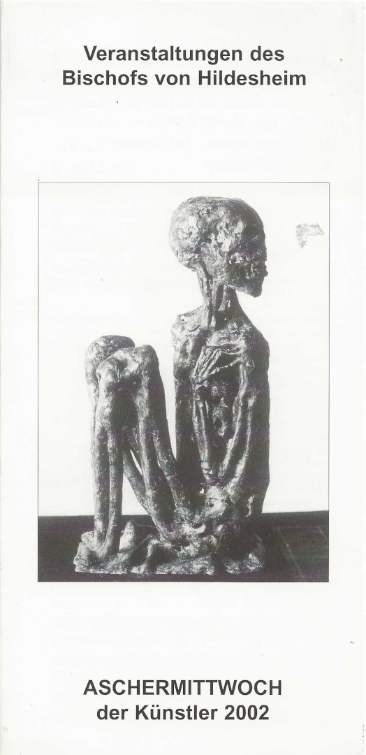 Emil Cimiotti “Plastiken” Flyer im Rahmen der Ausstellungen “Aschermittwoch der Künstler” zur Einzelausstellung im Dom-Kreuzgang Hildesheim. Ausstellung: 09.Februar 2002 - 07. April 2002. Flyer, 6 Seiten, s/w, Ausstellungsverzeichnis mit 15 Bronzen, abgebildet: “Ich denke an Alice” von 1975.